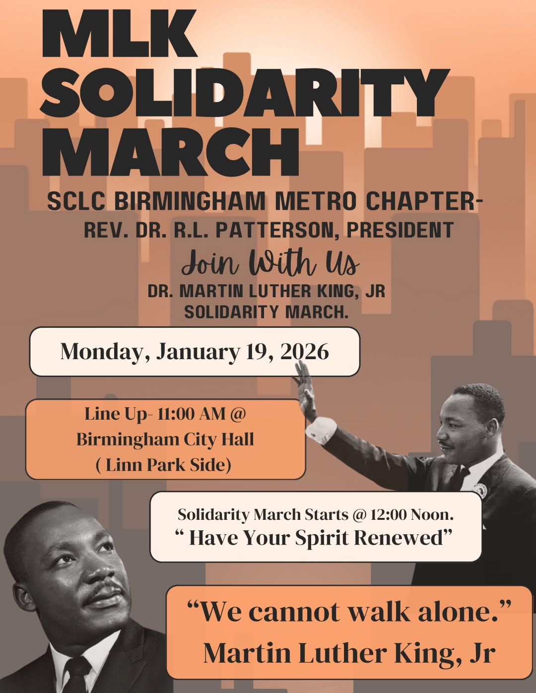 MLK Solidarity March MONDAY, JANUARY 19, 2026 Line Up at 11am Solidarity March Starts at Noon